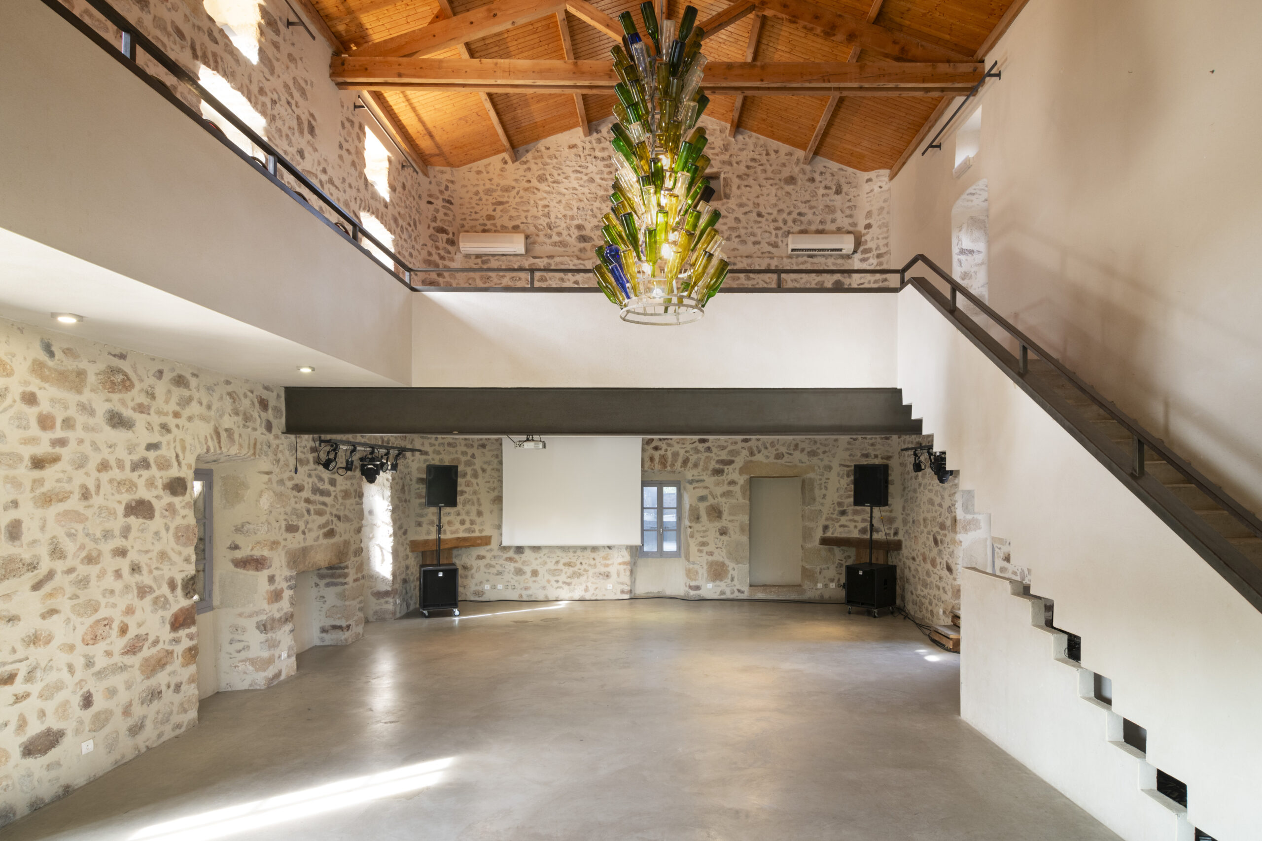 Entièrement restauré, ce vaste espace en pierres apparentes vous offre un moment de pureté et d’élégance idéal pour un repas professionnel encadré par un traiteur ou un mariage champêtre chic. La location de salle inclus l’accès à l’étage à un coin plus tranquille, à l’écart de l’agitation, qui sera pris d’assaut par les enfants.