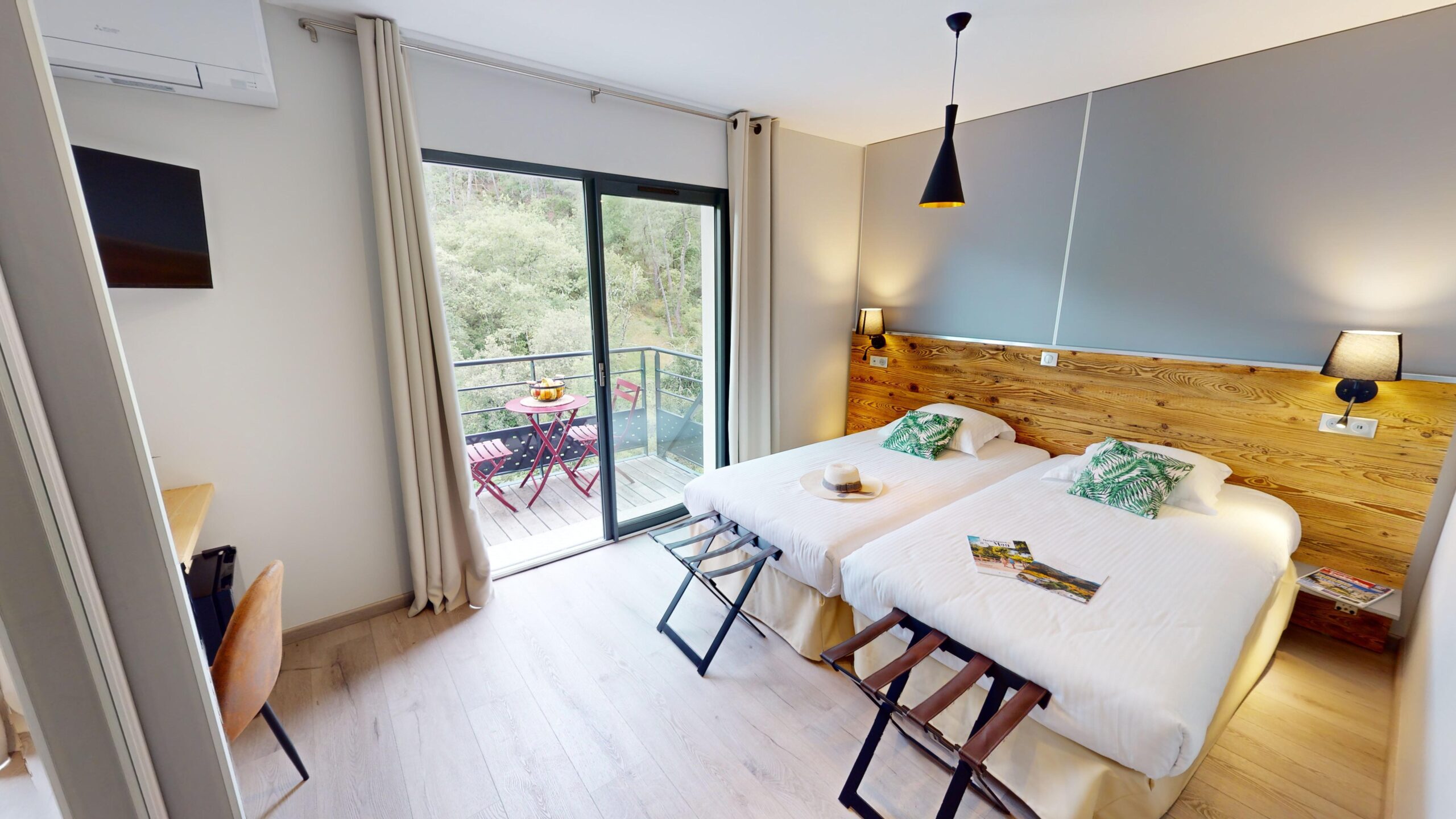 Selon vos besoins avec 1 lit king size (200×200) ou 2 lits simples (100×200).