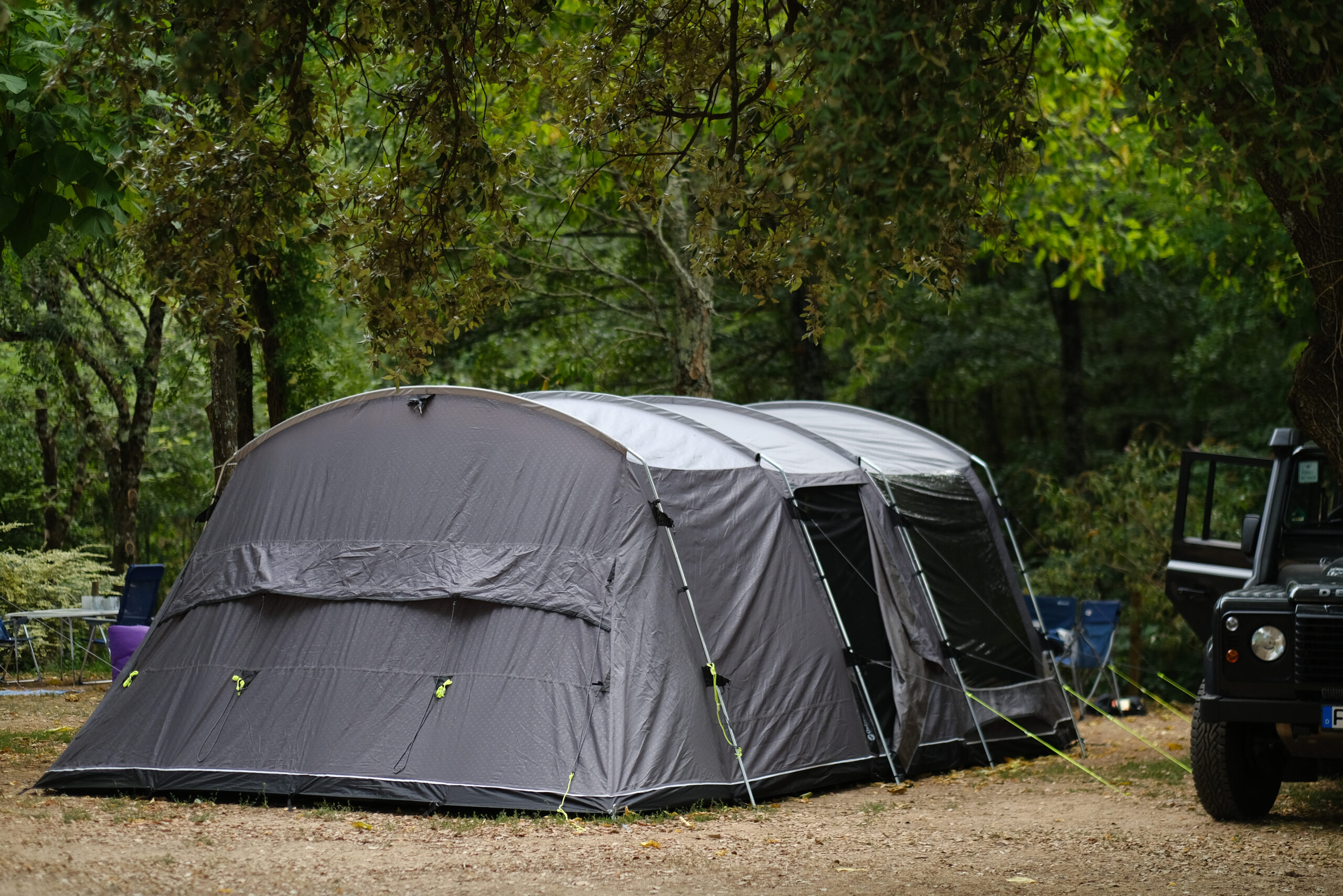 Deze grote kampeerplaats van ongeveer 150 m² kan gehuurd worden door één gezin of gedeeld worden door twee, waardoor je nog meer mogelijkheden hebt om optimaal van je verblijf te genieten.
